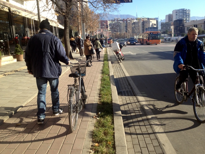 When I biked around last time, people used the few bike lanes for a quick and convenient parking spot. I actually had a guy apologize for parking in it last time. Most European cities are working hard to be the best European Bicycle City. Tirana is no different, they had all new off street bike lanes around the city center. The bad part is, not everyone respects it. Since the sidewalks were so full of people, the bike path was the less congested route. When I did see someone using the bike lane, they were ringing their bells full time. I saw lots of cyclists giving up on the bike lane and riding in the street. They also have a new bike share system, but I didn’t see any being used.