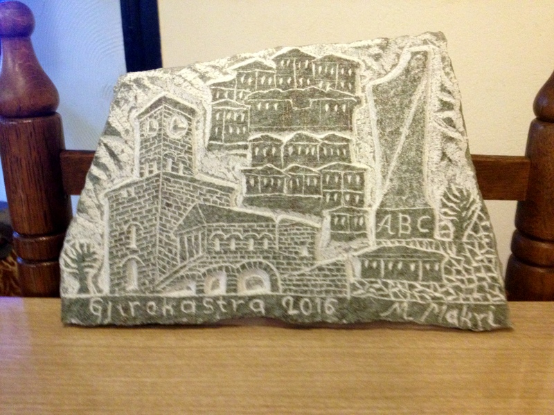 I bought lots of souvenirs: wood carving, stone carving, 3 rugs, handpainted ceramic bowl, Tirana beer mug and some handmade slippers for Natasa (no photo). I was shopping for a sweatshirt just before I left on the trip. Then I spotted this sweatshirt, in my favorite color. When wearing the sweatshirt I received so much free stuff from Albanians, both in Albania, Croatia and here in Slovenian. They buy me drinks, give me fruit but best of all I’ve been in lots of selfies with Albanians.